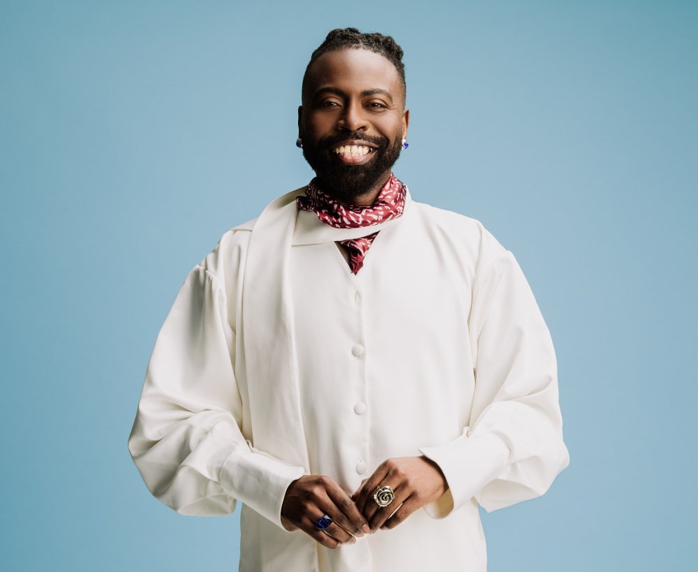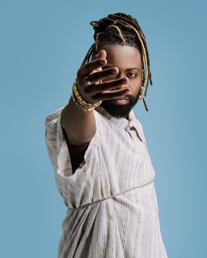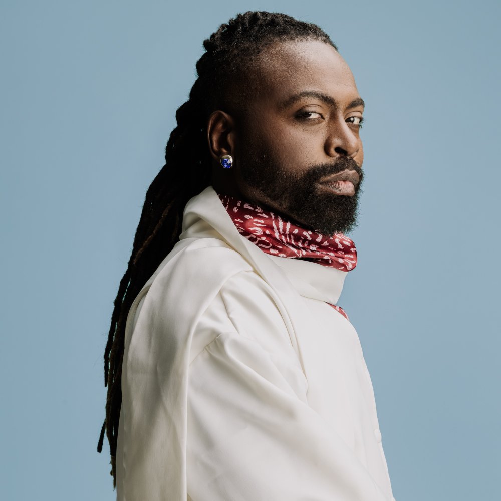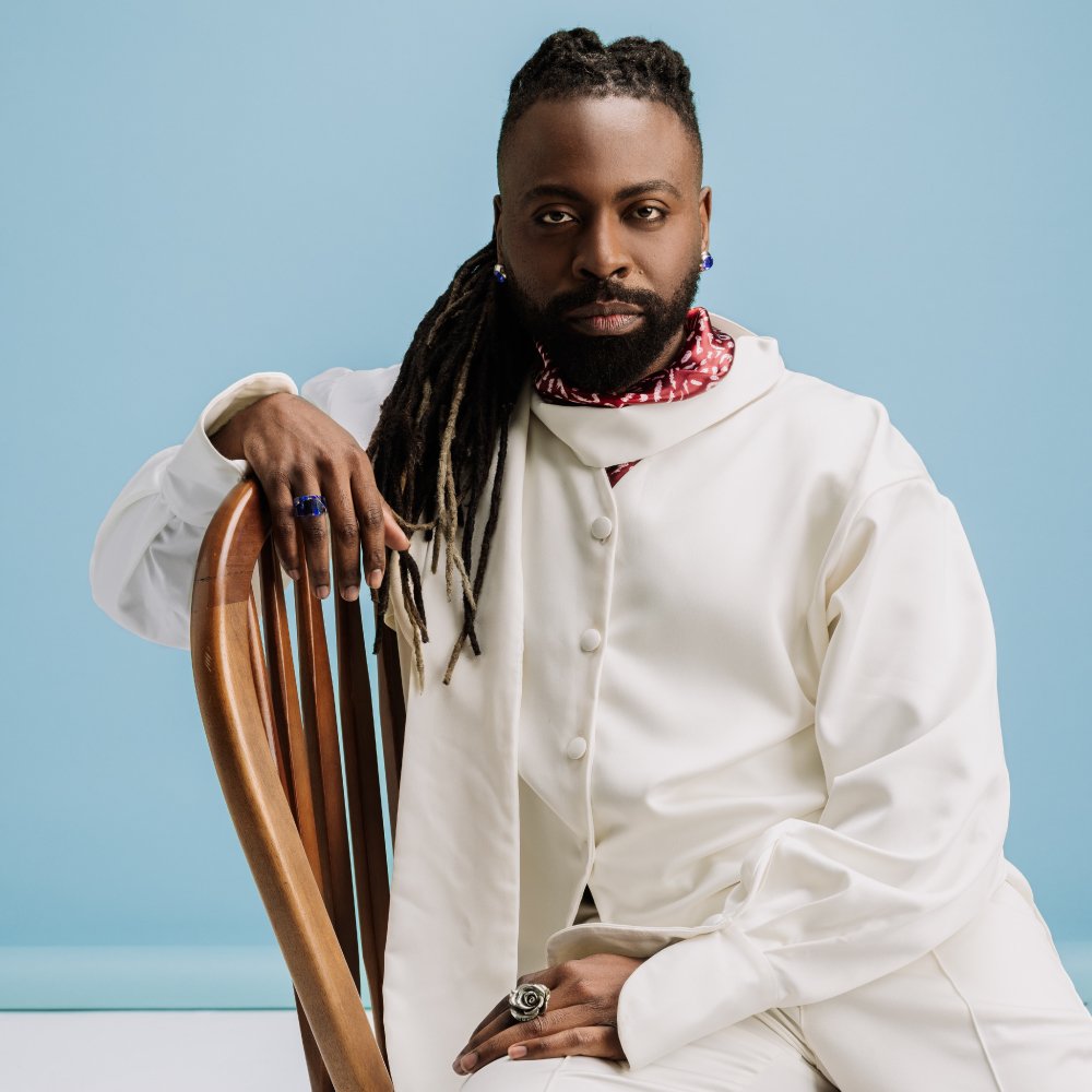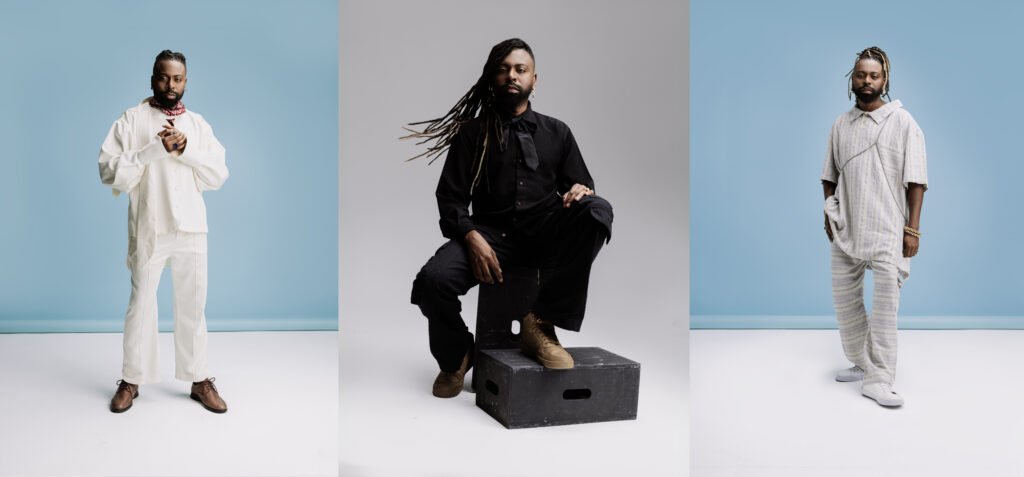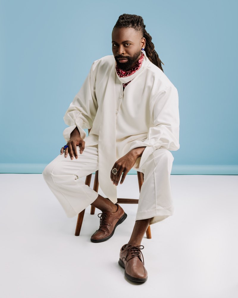 Para o dia das fotos, contei com o trabalho com a beleza, maquiagem e styling de Cadu Araújo; a força criativa de Cíntia Félix, com sua marca AZ Marias; o olhar afrofuturista na alfaiataria de Bruno Gomes, com a Áblior; e, sobretudo, o registro sensível, potente, racializado e verdadeiro de José de Holanda, que soube enxergar em mim aquilo que muitas vezes eu não enxerguei.