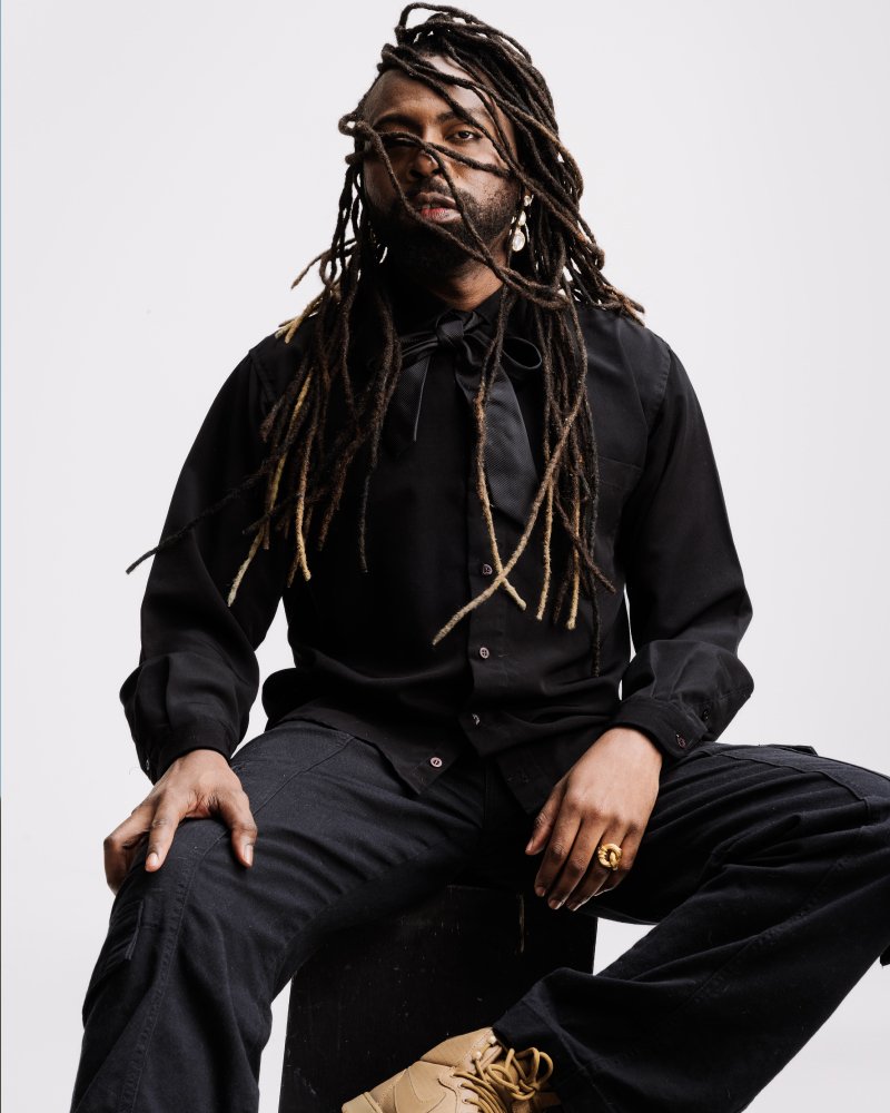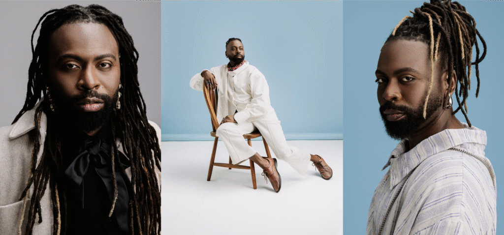 O cabelo foi preparado por DYOU, meu novo dread maker, que compreendeu o que meu Ori precisava para se fortalecer naquele dia. Meus dreads, presos em duas tranças para o início do ensaio, carregam mais do que estética: carregam memória e rito. E, antes disso, fui cuidado pelos profissionais do salão Seu Jorge, que, em uma sexta-feira, usavam branco e me acolheram como se estivessem cuidando de um filho de Oxalá. Esse detalhe é fundamento: cada gesto foi axé.